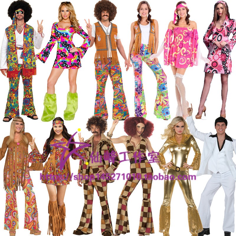 了男子 妇女60 70年代复古时髦的嬉皮舞时髦的嬉皮迪斯科舞厅花哨的服装打扮bellbottoms化妆舞会的服装 折扣 Extrafast News